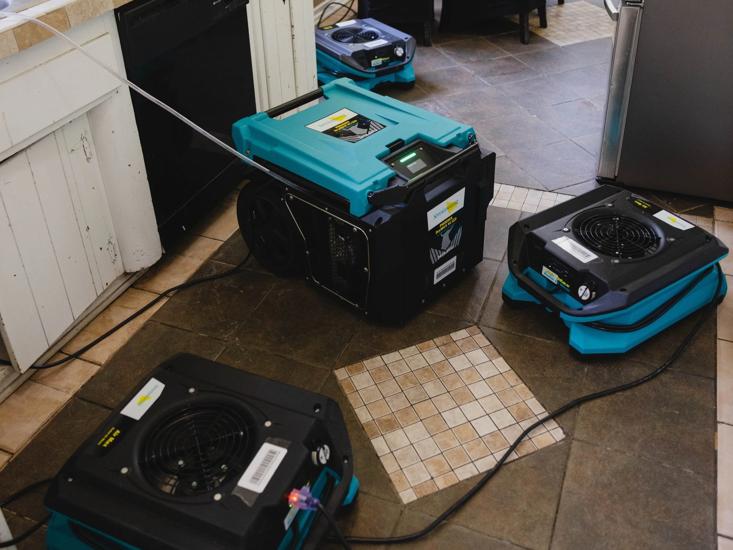 Dehumidifiers and Air Movers Being Used To Remove Water From The Affected Area.